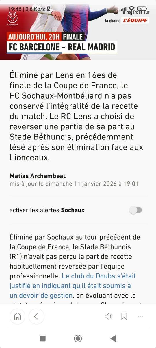MattGrinin Posté(e) il y a 3 heures Posté(e) il y a 3 heures https://www.lequipe.fr/Football/Actualites/Apres-sa-victoire-contre-sochaux-en-coupe-de-france-lens-reverse-une-partie-de-sa-recette-a-bethune/1632787 La classe 😎 eagle, MisterFraiZ, vince et 2 autres ont réagi à ceci 2 3 Citer